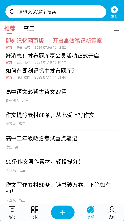 即刻记忆是一款功能非常强大的手机笔记记录软件,提供了多种科学的记忆模式和云端笔记类型,可以帮助我们记录并牢牢记住学习的内容,大幅度地提升了学习的效率。云端笔记的类型涵盖了语音速记、图文、试题笔记等,覆盖了生活中的方方面面;科学的记忆模式则是作答、背诵、听读等六种,并且每种模式都可以创建学习计划,让学习变得更加轻松愉悦。