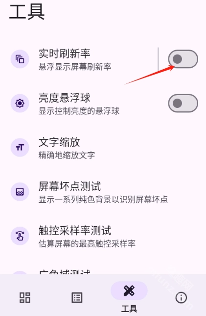 2. 打开工具列表,将【实时刷新率】选项右侧的开关开启