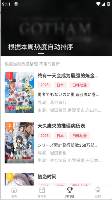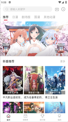 进入首页后,能看到丰富多样的动漫资源,涵盖日漫、韩漫和国产动漫等类别。