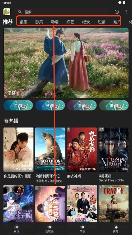 2. 在主页上可以看到多个影视栏目,选择喜欢的栏目进入。
