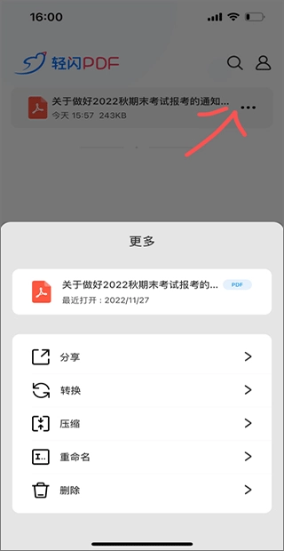 2. 点击页面上的三个小点图标,可以对文件进行压缩、分享或转换格式等操作;