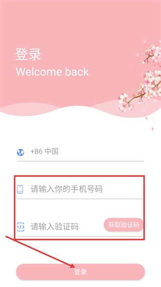 1、在登录页面,填写对应的手机号信息、验证码后,点击页面底部的【登录】按钮。