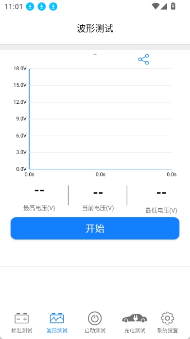 Kbattery波形测试可以测量最高电压、当前电压以及最低电压,充电测试支持空载电压、有载电压以及波纹电压等,我们也可以在系统设置里设置Kbattery语言,进行报告分享或清除电池测试数据、固件升级等操作。