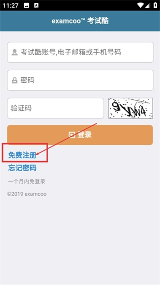 1、在【examcoo-考试酷】登录界面,若暂无账号,点击【免费注册】按钮进入注册页面,完成账号注册后即可登录使用平台服务。