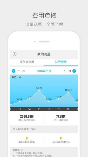3、查询体验优化:套餐方面,用户可查看个人套餐详情与已订购业务;账单方面,支持查看余额的具体构成情况。