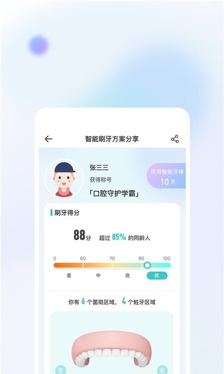 【3D刷牙指导】跟着3D刷牙指导,依据语音与动画的提示,一步步进行刷牙操作,可针对性解决刷牙不彻底的问题