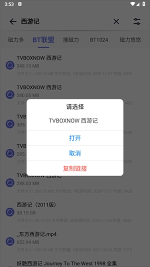 3、立马就会跳转到相应的内容,可以切换不同磁力搜素结果。