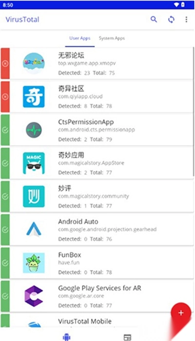 VirusTotal Mobile是一款工具软件,软件可以帮助用户快速筛选出文件和应用程序在您的手机上的病毒,无论是已安装的应用程序还是隐藏的文件内容,软件都能进行全面扫描,帮助你筛选出带有病毒的文件,然后将扫描结果全部反馈给用户,从而更全面地评估文件或应用的安全性,凭借独特的检测技术和安全分析服务,逐渐成为了网络安全的重要工具。