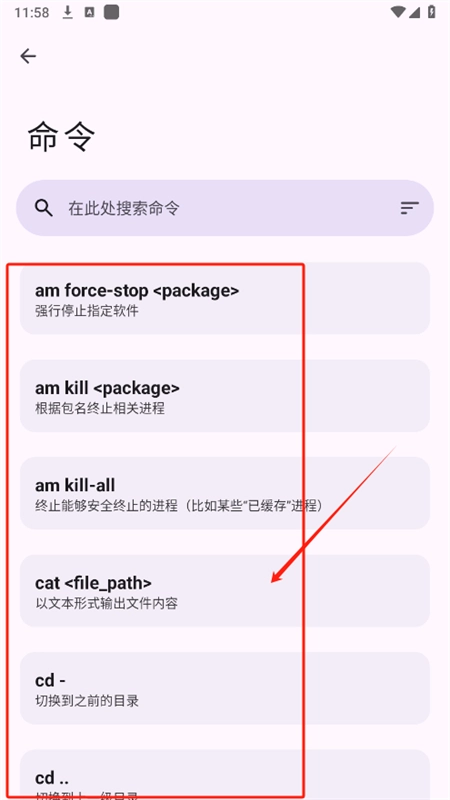 3.提供一系列常用的ADB命令示例,轻松处理如logcat、top等连续运行的命令。