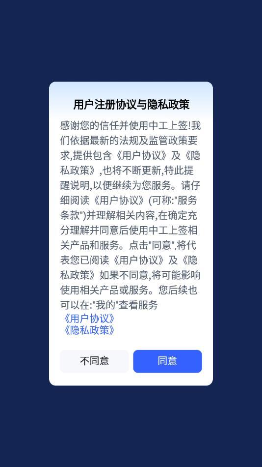 1、软件安装完成后打开,点击同意用户注册协议和隐私政策。