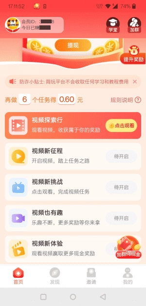 -无门槛收益不需要投资和门槛,用户仅通过观看广告、完成任务就能赚取奖励。