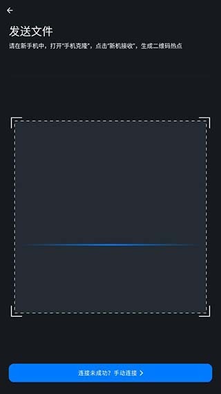 6、新机界面会显示一个二维码,用旧机扫描该二维码就能自动迁移软件。