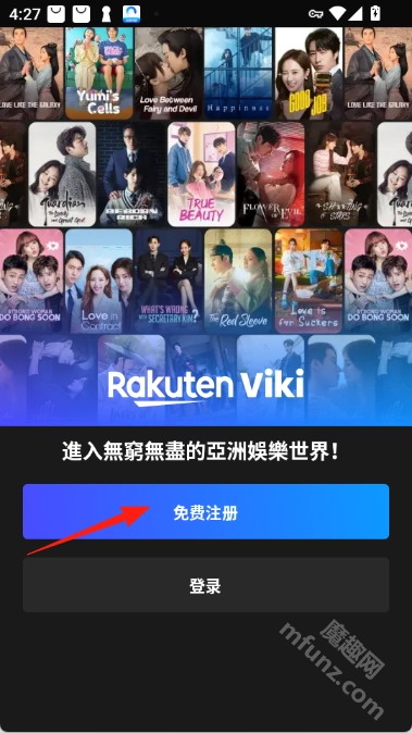 1.打开viki后,在首页和免费注册和登录两个选项,点击免费注册