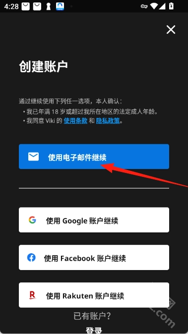 4.注册完成后使用电子邮件或google账户、facebook账户以及rakuten账户进行登录即可。