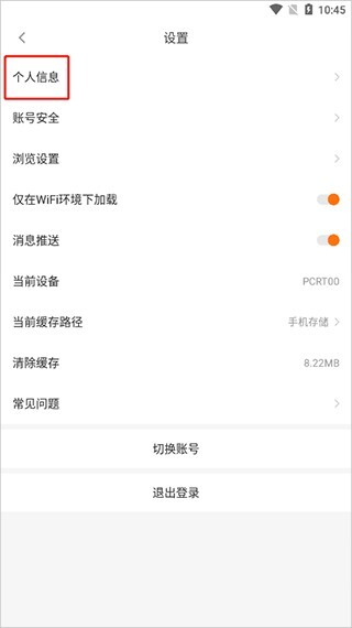 3、进入设置界面后,点击页面中的个人信息菜单;