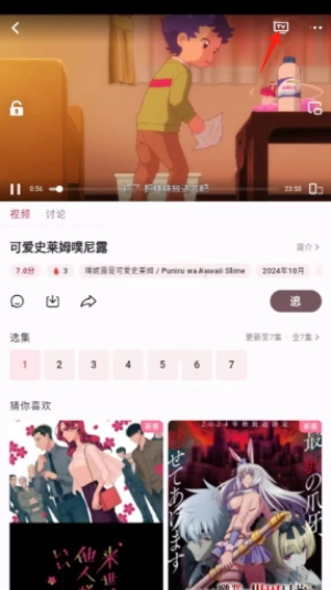 2.点击进入你想要观看的动漫,点击右上角的TV连接到你的投屏的设备即可