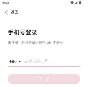 4.最后输入手机号,点击下一步,然后根据提示进行操作即可完成注册和登录