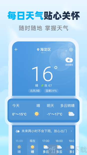2. 实时天气语音播报,解放双手,不耽误您的宝贵时间。