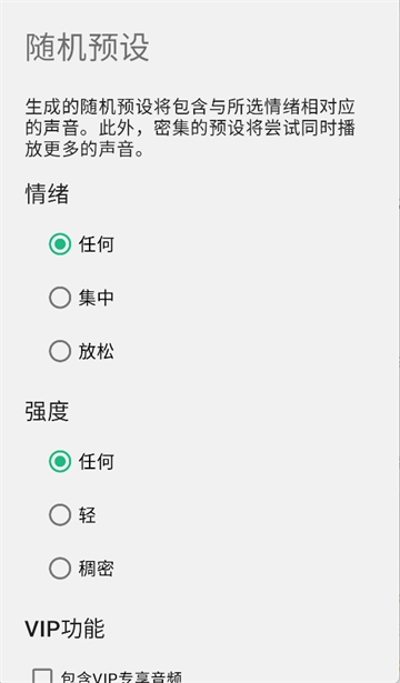 2、除了手动设置外,支持随机预设功能,系统会根据喜好自动推荐匹配的音乐场景,省时又有惊喜感。