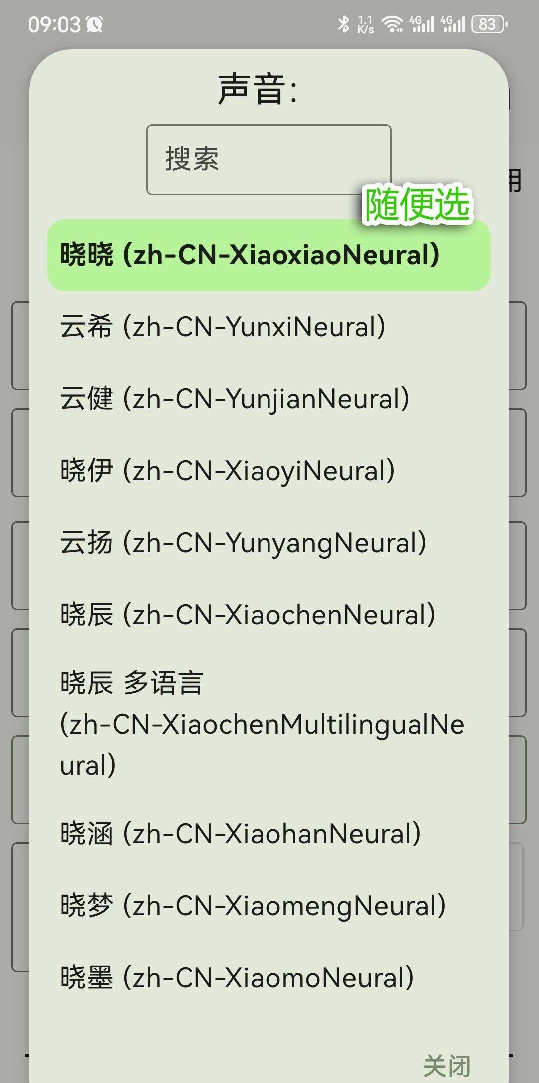 5、完成上述操作后就可以选择晓晓、晓辰、晓伊、云希、云健、云扬……等声音,再进行常规设置即可