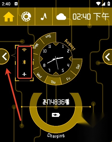4、点击左上角的三角图标可调换出网络、蓝牙和飞行模式