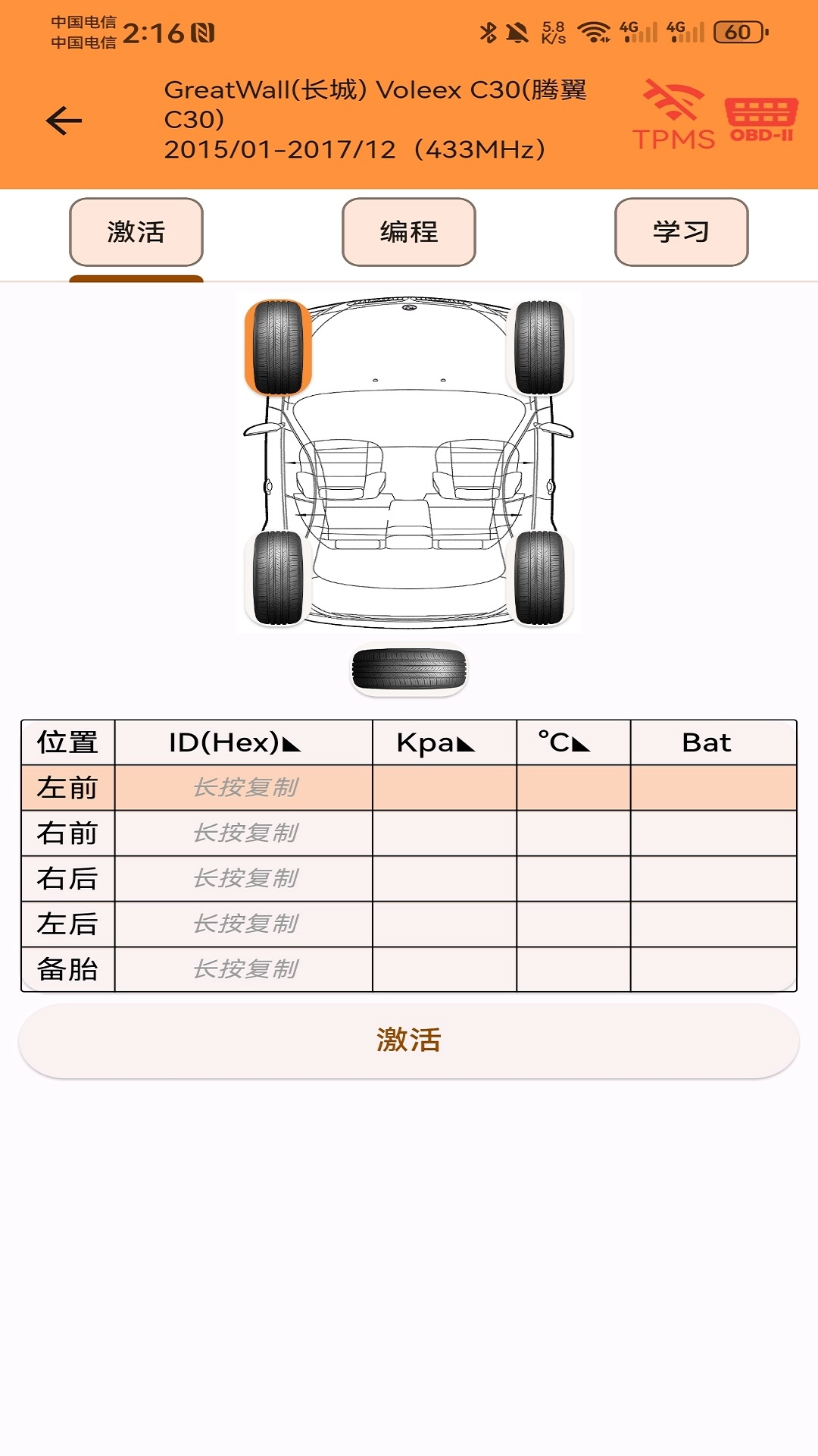 Javas支持亚/欧/美及国产98%以上带胎压系统的车型,可快速读取胎压、胎压编程、胎压学习及激活胎压传感器。便捷、高效、无线传输,设备支持315MHz和433MHz胎压传感器。