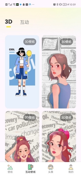 3、互动壁纸页面设有3D与互动两类壁纸分类,可帮助用户及时了解各类壁纸资源。