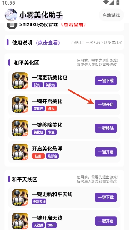 2、美化包一键启用,支持快速移除与恢复默认,防封机制。