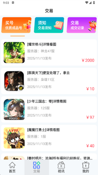 这个游戏账号交易平台让账号交易变得安全可靠,用户能够自由进行账号的买卖操作,无需担忧安全方面的问题。