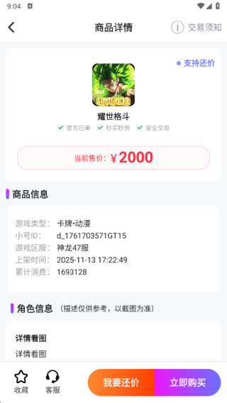 3、在账号详情页面里,你能查看具体内容,还可以进行我要还价或立即购买操作。