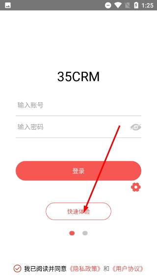2、进入【35CRM】登录页,除账号密码登录外,点击【快速体验】按钮可进入体验登录界面。
