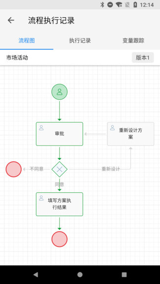 4、流程执行记录:可分别查看流程图与执行记录,以此把握后续办公方向。