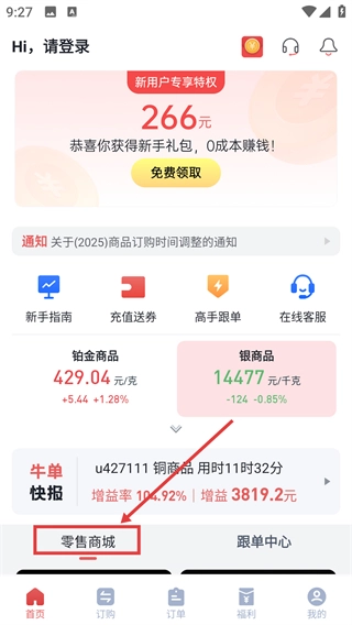 1、在页面底部找到【零售商城】入口,点击进入对应板块,可查看商品相关内容。