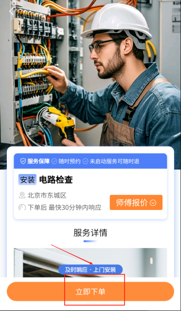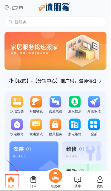 1、打开应用进入首页,浏览家居服务分类,根据自身需求筛选维修、安装等具体项目类型。