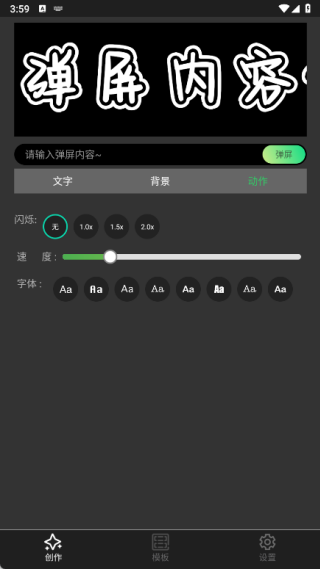 1、打开创作页面,输入弹屏内容,接着在文字设置中调整文字大小、文字颜色、边框宽度、边框颜色以及阴影宽度;