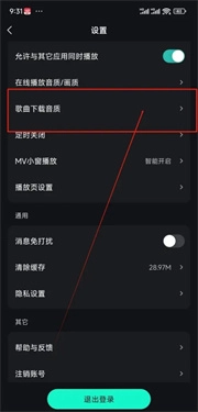 在设置界面中,点击“歌曲音质”。