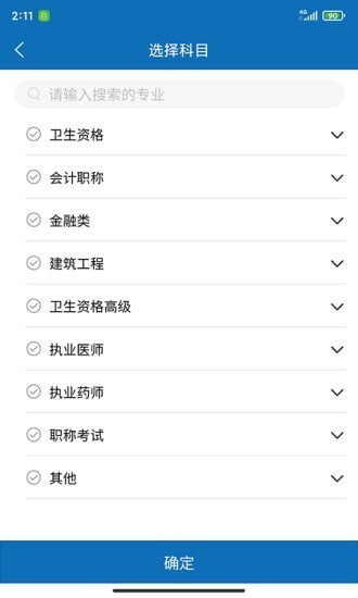 软件涵盖了多种考试科目类型,用户只需挑选自己所需参加考试的科目就行。
