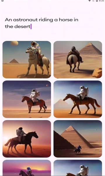 1、只需一段话就能把你的灵感呈现出来,直接输入就能生成对应的画作。
