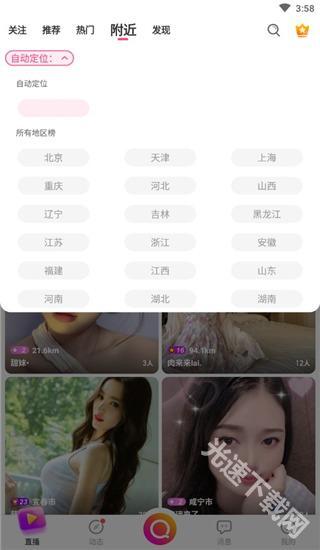 4、另外在附近栏里,还可以切换所在地,浏览全国不同地区的主播;