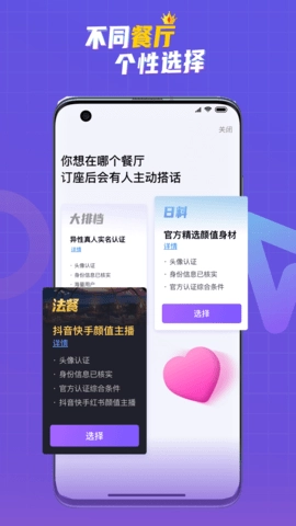 1、多样餐厅选择:能契合你对相亲对象的不同期待,可在“麻辣烫店”“日式料理店”“法式餐厅”等不同场所挑选座位;