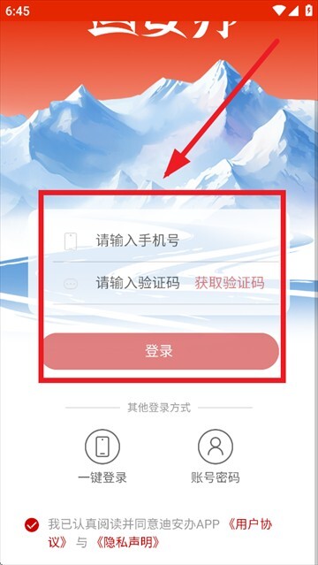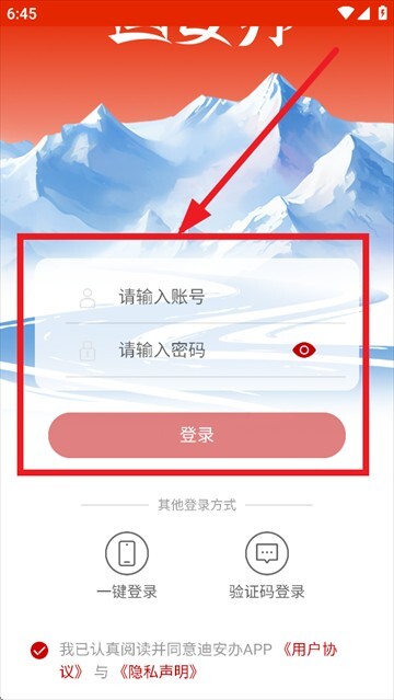 安装并打开迪安办后,在登录页面直接输入账号和密码即可完成登录。