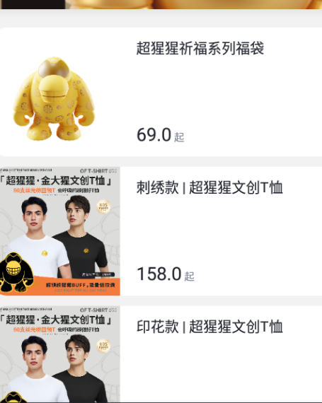 1、界面运用简洁直观的瀑布流展示方式,潮玩商品通过高清图片结合简短亮点介绍来呈现。