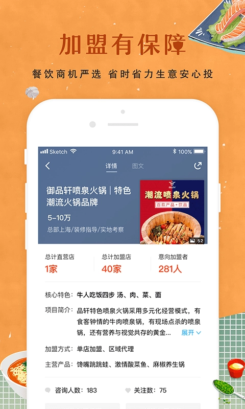 汇集火锅、快餐、西餐、奶茶等餐饮领域当下最热门的商机,覆盖从创业到加盟开店的全流程,精准契合您多样化的投资需求。