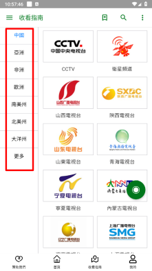 5、最后在主页点击左上角的三条横线图标,就能查看国内的电视频道了。