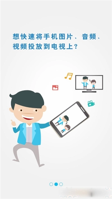 可以将本地手机里的照片、音乐、视频投射到电视大屏上,让客厅里的大屏电视变身家庭共享中心,和家人朋友一同分享欢乐时光!