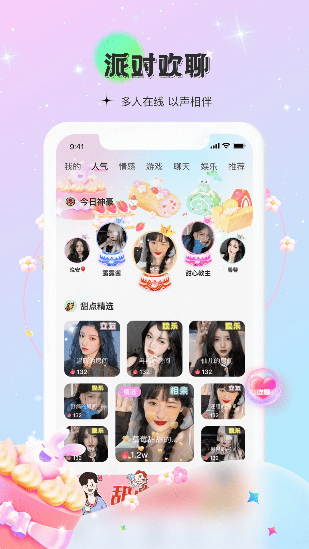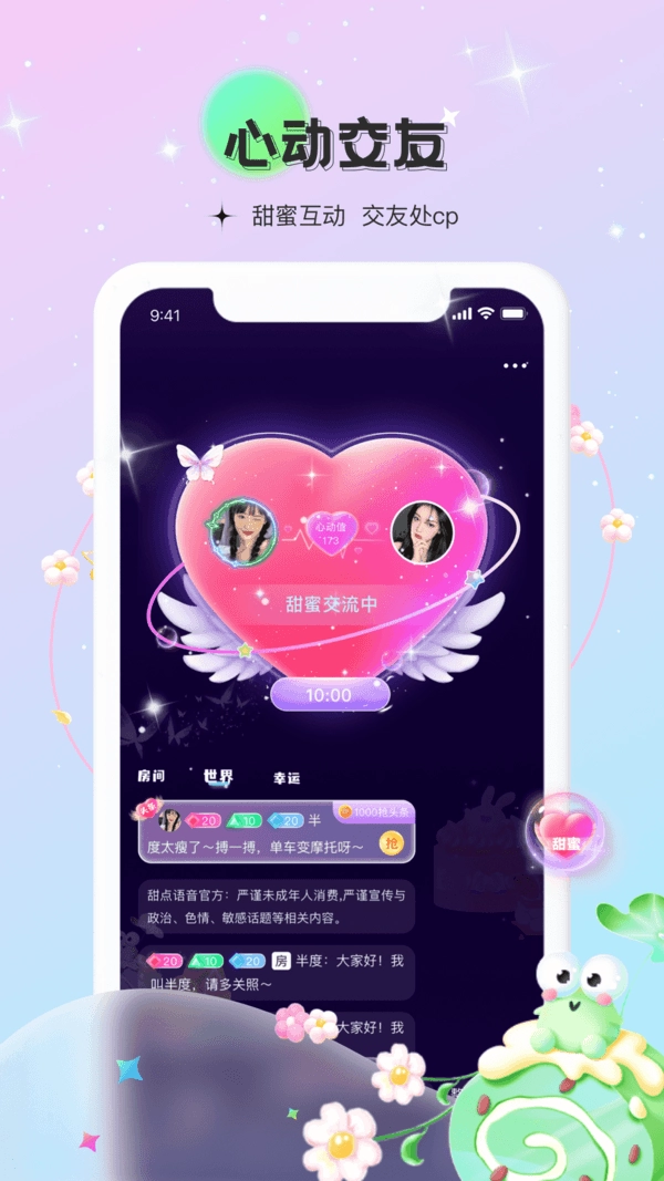 甜点语音是一款超棒的语音交友软件,能帮你拉近彼此距离,还有各种有趣的聊天功能等你来探索,在这里可以结识不少志同道合的朋友,专属空间让你遇见心意相通的人,而且全程没有任何收费,感兴趣的小伙伴千万别错过,快来试试吧!
