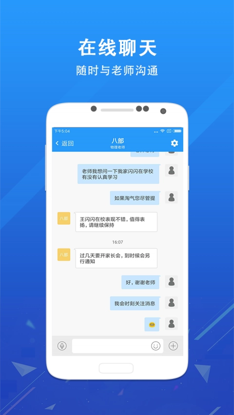 -及时聊天:与老师在线沟通,参与班级事务讨论;