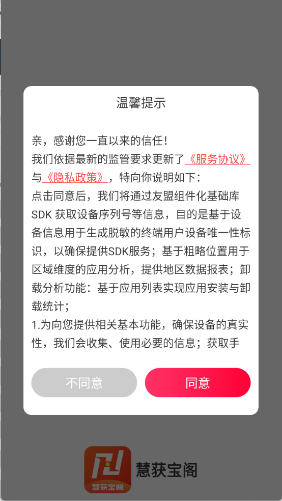首先,前往3G游戏网的慧获宝阁,查看隐私政策与用户协议并点击同意。