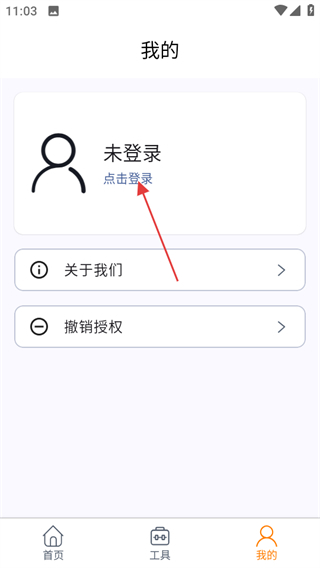 在“我的”页面中,点击“未登录”下方的“点击登录”按钮,即可进入登录页面。