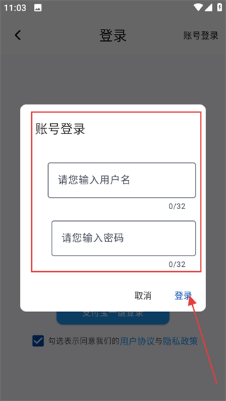 4、在账号登录弹窗里,输入相关信息后点击登录按钮,就能完成账号登录操作。